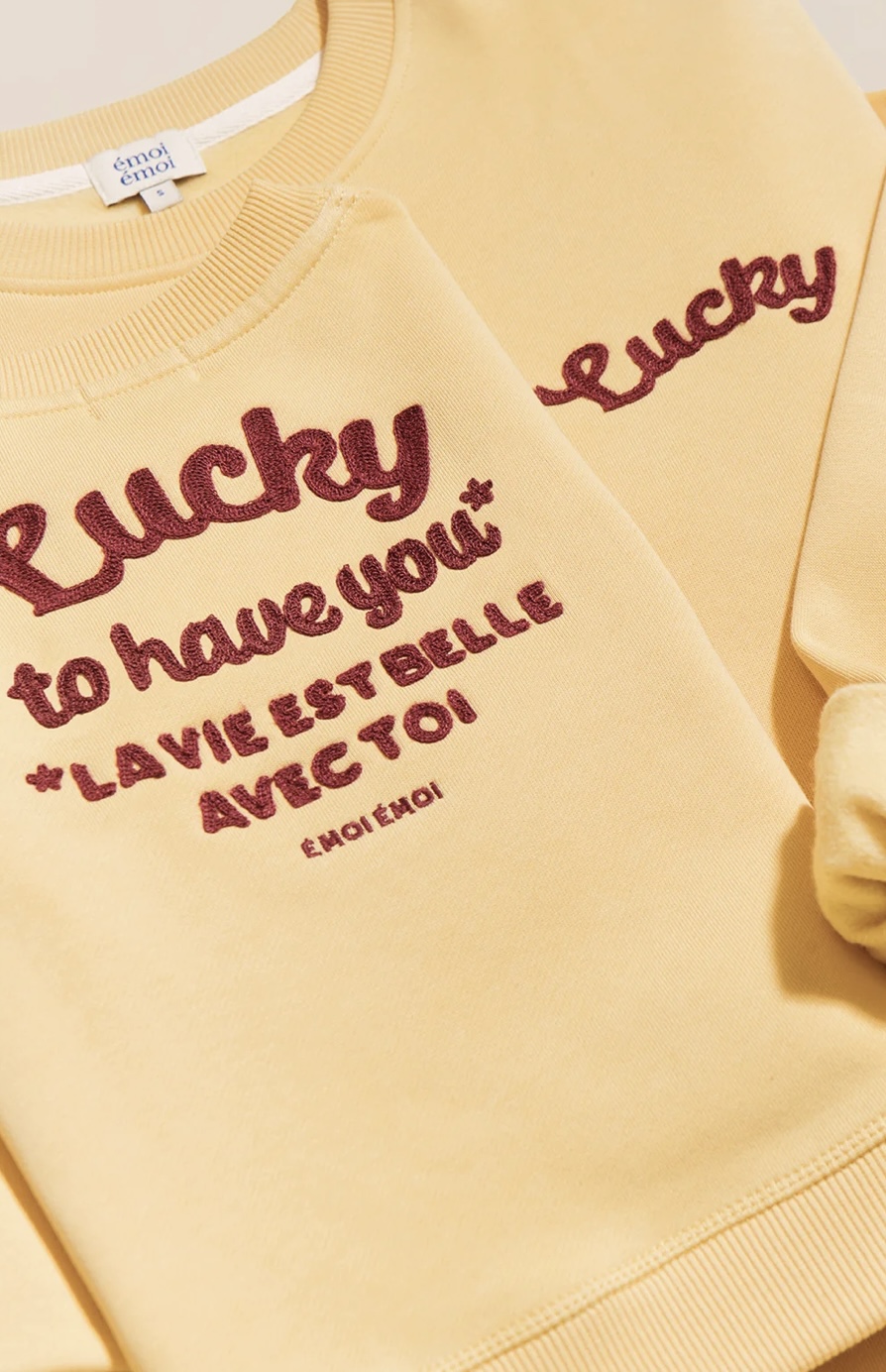 Sweat LUCKY TO HAVE YOU version maman et/ ou version bébé/enfant de Emoi Emoi