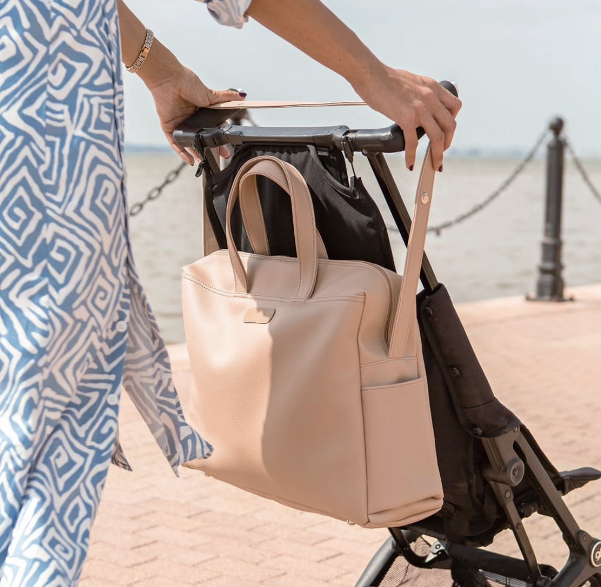 Passez une bonne journée avec ce sac maman moderne et confortable. Le sac de maternité DORA Rose Poudré de Primanata est multifonctionnel, vous pouvez le porter comme un sac à main avec une bandoulière chic ou le porter avec ses larges anses.  Il est également accrochable à votre poussette grâce à ses boutons de pression.
