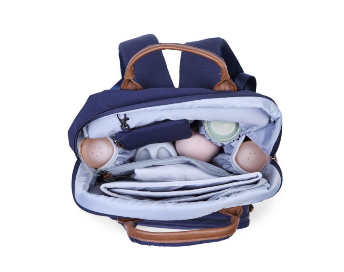 Ce sac fonctionnel et tendance offre tout l’espace de rangement et les accessoires dont une famille moderne a besoin :