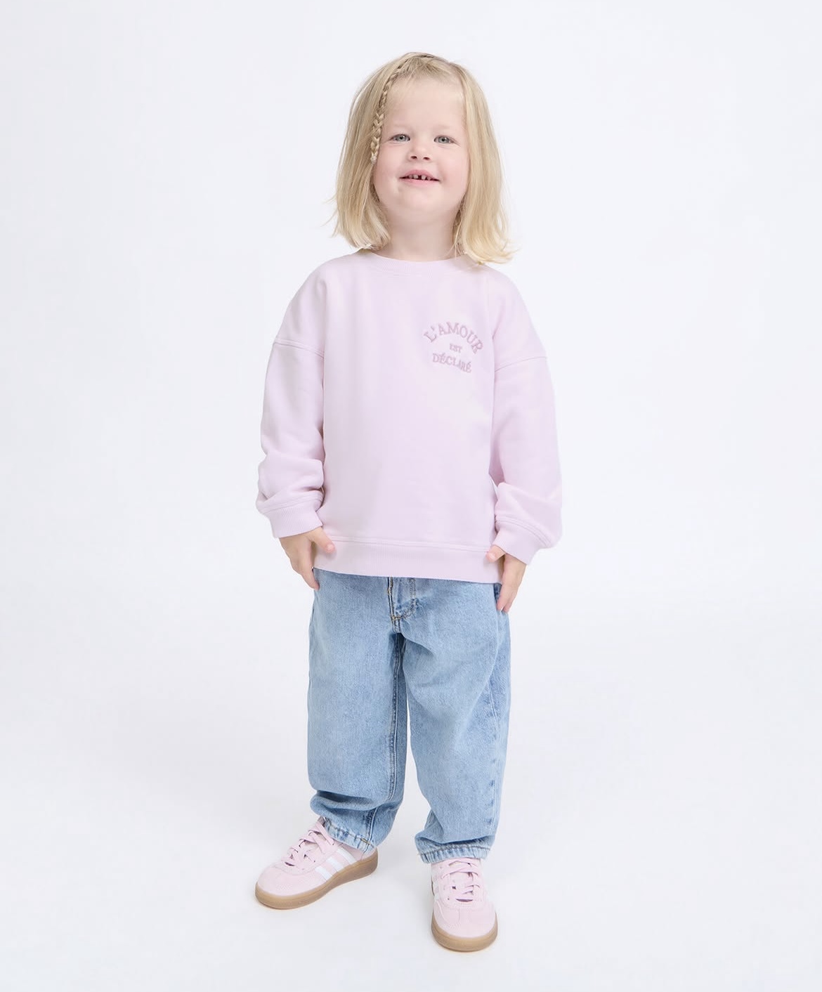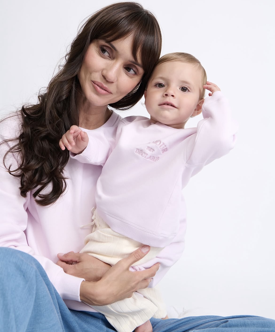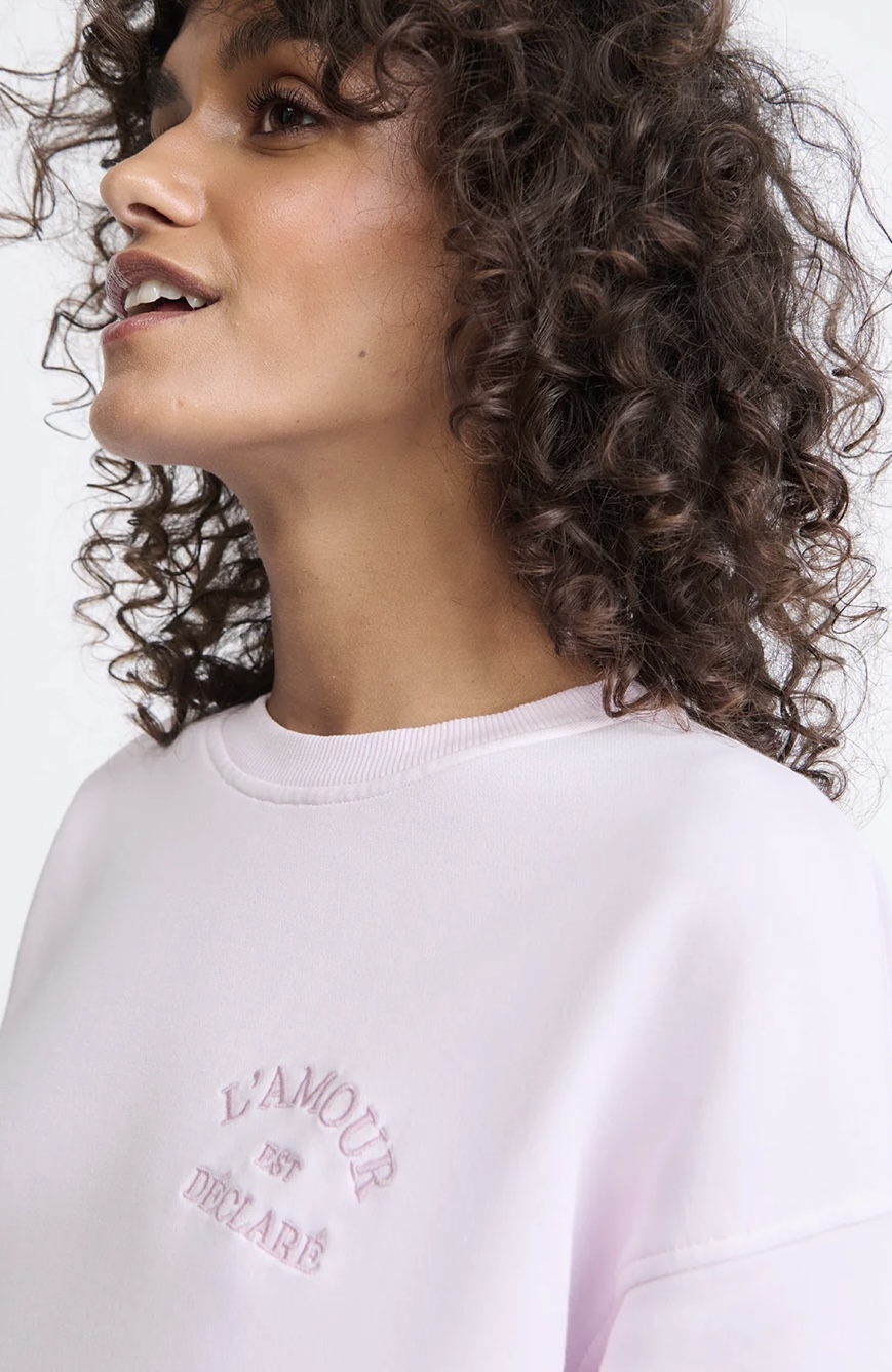 Sweat L’AMOUR EST DECLARE rose version maman et/ ou version bébé/enfant de Emoi Emoi