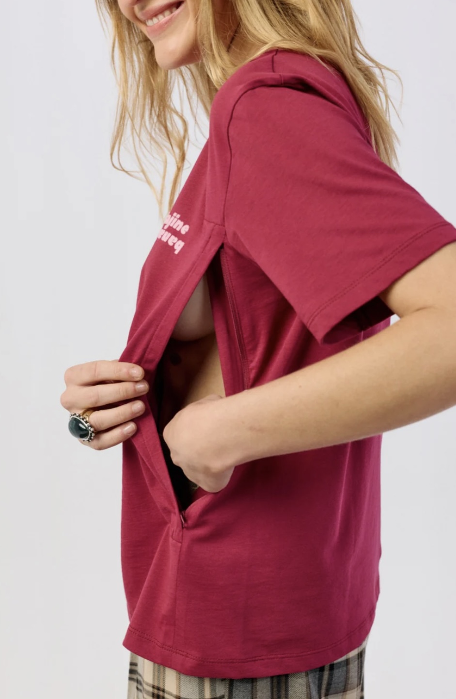 Pour ce t-shirt d’allaitement à la coupe large, nous vous conseillons de prendre votre taille habituelle pour un tombé loose.