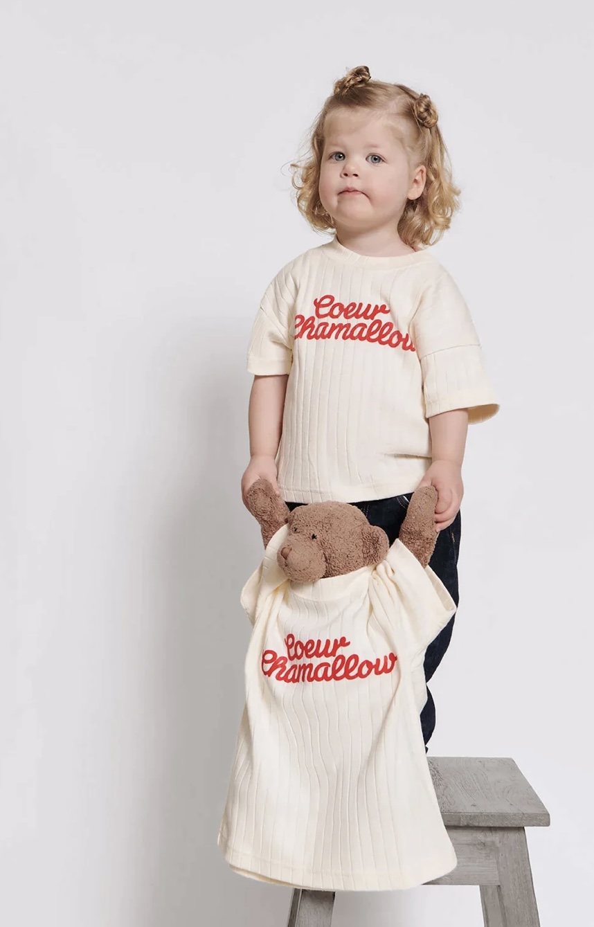 Les t-shirts COEUR CHAMALLOW, c’est la tendresse à croquer sans modération, dès la naissance  et sans limite d’âge.